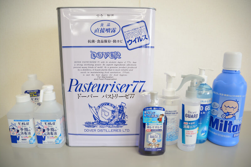 研修室出入口等主要な場所に手指消毒薬を配置し、手指消毒の徹底をお願いしています。